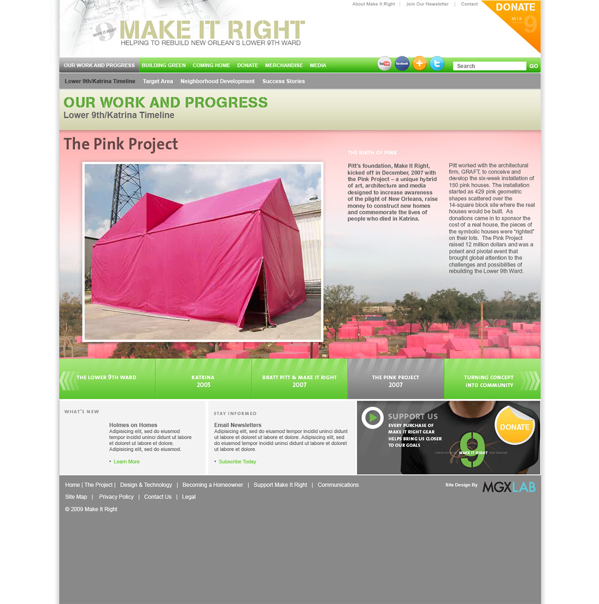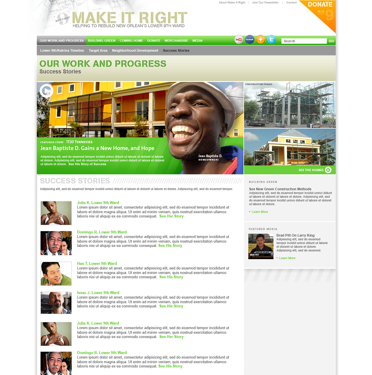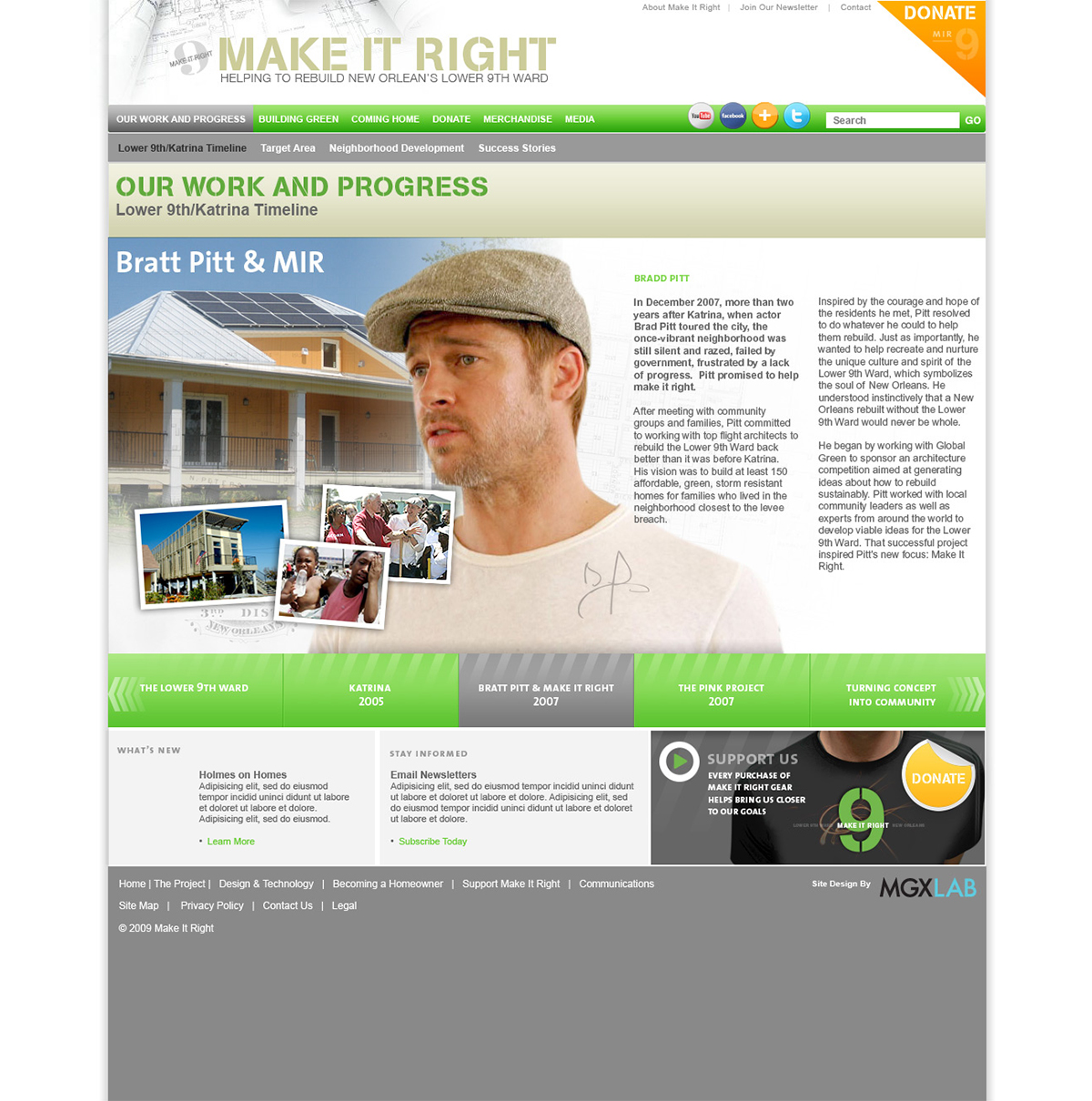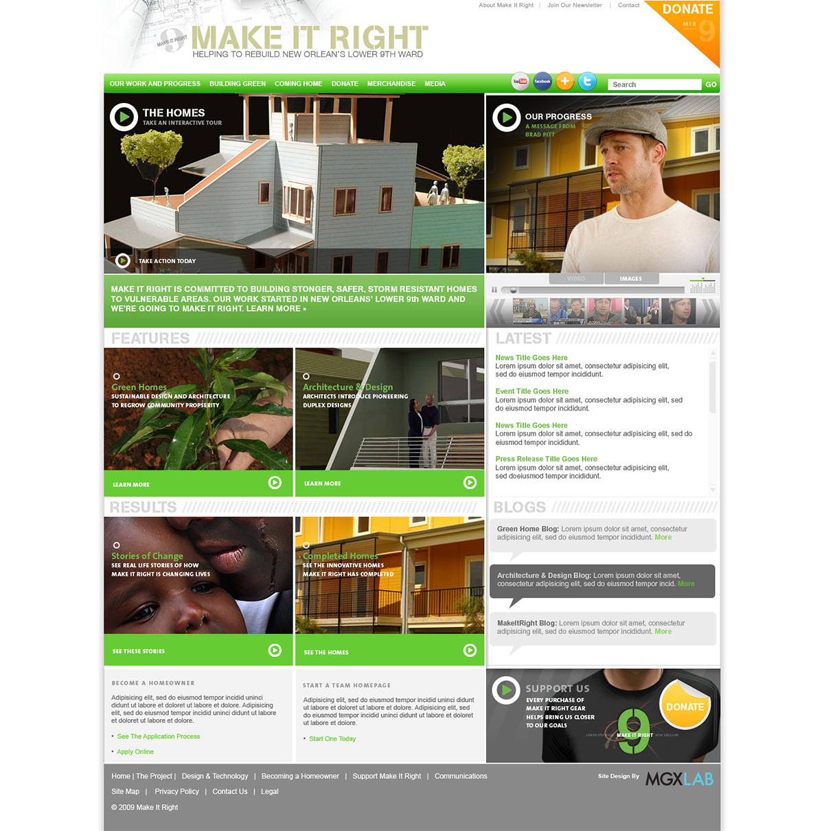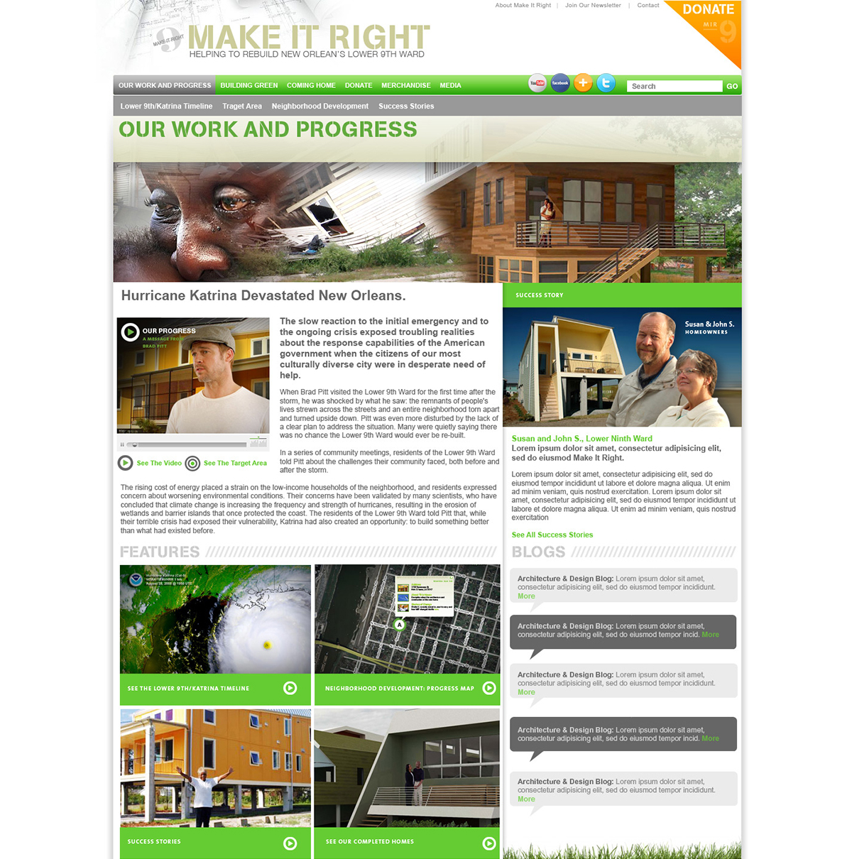 Following the destruction of New Orlean’s Lower 9th Ward, Brad Bitt assembled a team of sustainable home builders to rebuild the area. I was brought in to develop the brand and website to support the project. The website won the Webby Award for the Activism category.